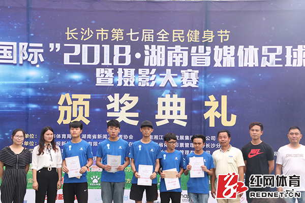 总决赛结束后,长沙市第七届全民健身节暨裕天国际·2018湖南省媒体足球邀请赛颁奖典礼就地在风光足球场进行。长沙市政协副主席、长沙市体育局局长李平,湖南省新闻工作者协会副秘书长陈坚,湖南日报新媒体发展有限公司总经理熊佳斌,长沙市体育局副局长杨亿明,湖南省体育彩票管理中心长沙分中心主任夏潇,裕天国际董事长王裕文等领导和嘉宾出席了颁奖典礼。典礼依次公布了优秀志愿者奖、摄影大赛优秀奖、全民健身推动奖和裕天国际·2018湖南省媒体足球邀请赛冠亚季军奖。