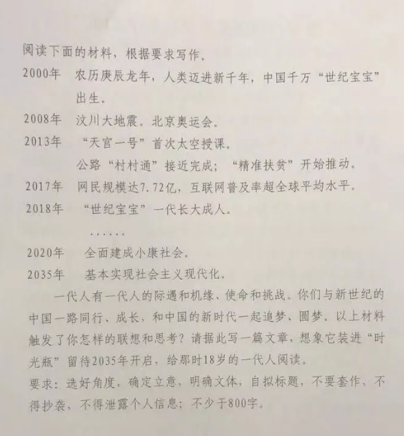 在第二次命题组碰头审题研讨会议上,楚红辉老师满面春风走进来,他笑着说:“老师们,这次的作文我是用心了。我担心,今年的全国卷1真的会采用这道题啦!”老师们听罢都会心一笑,听了楚老师的命题意图和思路后都非常佩服,觉得“写给2035年”这个材料作文非常符合现在的语文高考改革方向,很能体现学生的思想水平。而楚老师在之后的“命题说明”中也详细阐述了自己的命题理念: