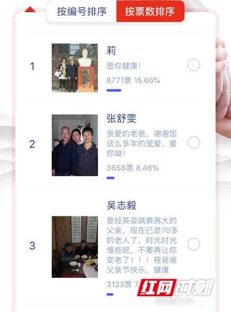红网时刻6月14日讯(记者 唐频辉)送祝福、晒父照、拉票、赢奖品……父亲节还未到,一场晒父爱的活动已经在线上如火如荼展开了。由红网传媒和酒鬼酒共同举办的“干杯吧,老爸”致敬父亲节特别活动自5月底启动以来,通过微信招募、户外大小屏的宣传推广,人气非常火爆,吸引了近20万网友参与,纷纷给老爸送祝福、晒父亲照片、拉好友来投票,在游戏的过程中唤起内心对父亲的浓情厚爱,感恩父亲。