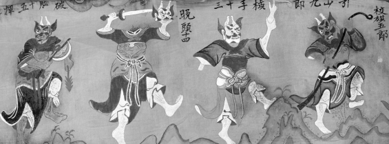 在湖南众多的傩坛中,梅山众神也化为了镇守五方的“猖神”。猖神,既是鬼,又是神。辰州傩戏《请五猖神筶》云:志心皈命礼,仰启蓬莱龙虎山,重重叠叠起黄斑,猛岩前为飘飘云,五郎上将斩邪精。大郎骑的青斑虎,二郎随后骑黄斑,三郎骑的林斑虎,四郎骑虎上刀山,只有五郎行人法,领吾兵马去游方。大江黄河是吾走,小江黄河水也浑,打从阎王路司殿,翻身跳上五台山……”其神性和神格,就与梅山众神相差无几。