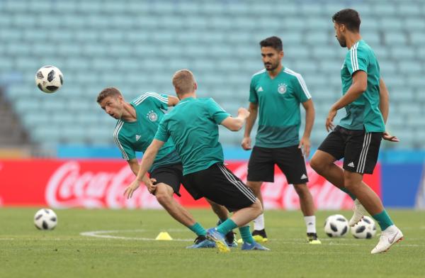 6月22日,德国队在俄罗斯索契菲什特体育场训练。新华社 图