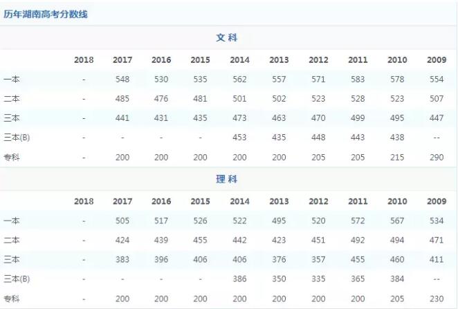 历年湖南高考分数线汇总: