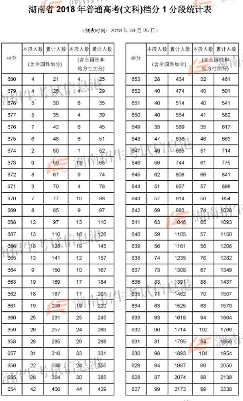 为了帮助广大考生充分了解自己的高考成绩在全湖南省排名所处的位置,并且为填报志愿提供强有力的支持。考试院在公布考生个人成绩的同时,还第一时间权威公布湖南省2018年普通高考(文科)档分1分段统计表,敬请查收!