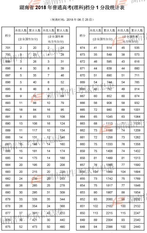为了帮助广大考生充分了解自己的高考成绩在全湖南省排名所处的位置,并且为填报志愿提供强有力的支持。考试院在公布考生个人成绩的同时,还第一时间权威公布湖南省2018年普通高考(理科)档分1分段统计表,敬请查收!
