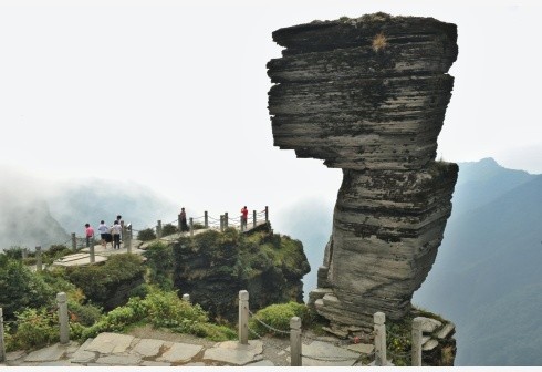 梵净山位于贵州省铜仁市境内,是武陵山脉主峰,遗产地面积402.75平方公里,缓冲区面积372.39平方公里。梵净山生态系统保留了大量古老孑遗、珍稀濒危和特有物种,拥有4395种植物和2767种动物,是东方落叶林生物区域中物种最丰富的热点区域之一。