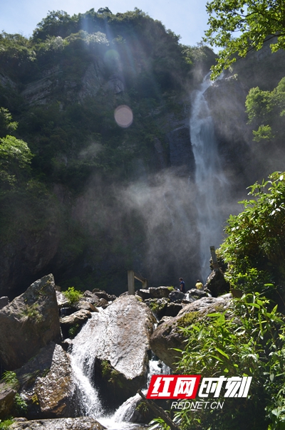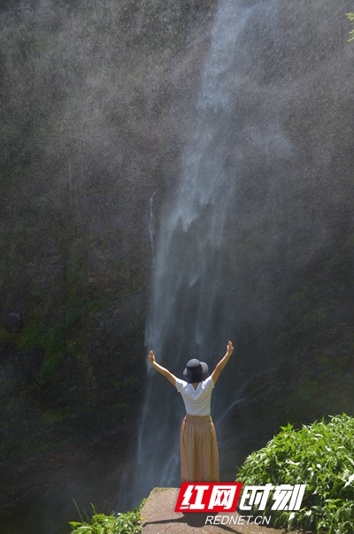 有着“湘西南第一飞瀑”美称的玉女溪瀑布,从90多米高的悬崖顶部腾空飞下,水雾如烟,气势磅礴。