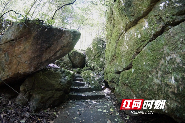 沿途岩石随处可见厚厚一层的青苔。如此茂密的青苔,一般生长在生态环境优良,气温幽凉之处。