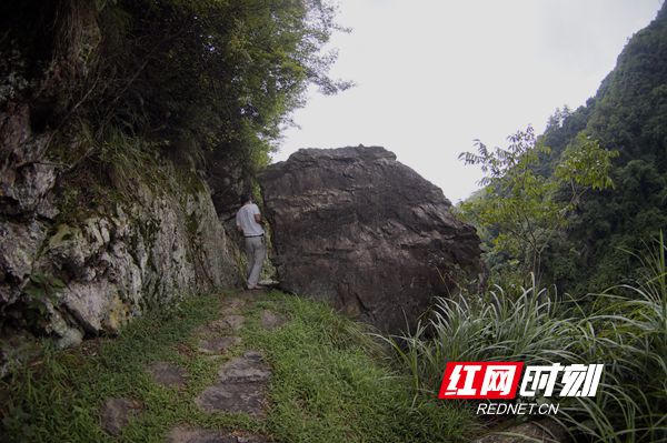 湘黔古道上有道风景——岩门峡。有个传说,花园阁人凿石修路,历经49年,快要修通时,被一块巨石挡住。修路的人们不放弃,他们的执着感动到神仙,神仙电闪雷鸣,巨石瞬间断开,形成一道门。