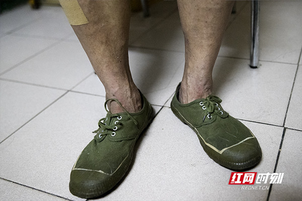 工作了一整晚,回到家中,廖振杰的鞋早已湿透,本来贴着膏药的腿也有些麻木。