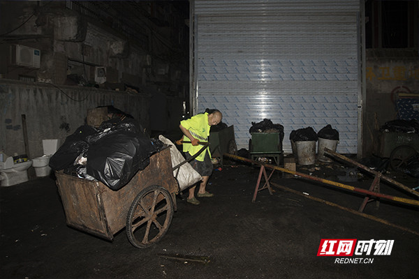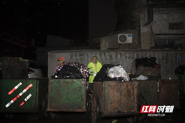 凌晨4点,已经下班了的廖振杰还不能回家,因为垃圾站要5点才开门,他必须等到垃圾场开门倒掉垃圾才能回家。