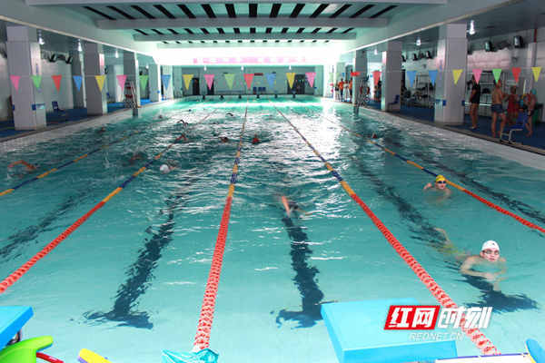 作为天心区的游泳培训基地,该游泳池不向社会大众开放,里面只有学习或训练的中小学生,并且配备专业的教练和救生员,这一点吸引了很多家长选择。带了两个儿子过来游泳的姚女士,大儿子上初中,小儿子才准备上一年级,都在这里游泳。“这里游泳池比外面大而且环境也好,在室内又都是学生,孩子们都很喜欢来这里上游泳课的。”姚女士笑着说。