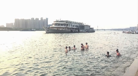 同日下午6时30分,三湘都市报记者在风帆广场亲水平台看到,尽管岸边竖有禁止下河游泳的警示标志,却丝毫没有影响到纳凉者下水,而下水游泳者,大多未携带安全气囊及救生圈等防护设备。“天气太热,到河里降降温。”来自衡阳的李先生和几名同事在亲水平台附近水域游泳或戏水,还带了一名4岁左右的男孩。