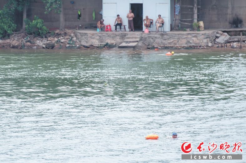 昨日上午10时26分,在开福区风帆广场附近水域,有几位市民在湘江里游泳。