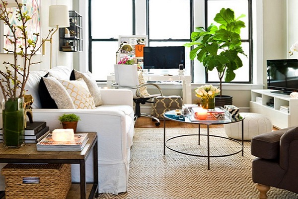 家居绿植的布置要考虑具体的室内各环境的装饰特征进行,如结合家具、陈设进行布置,沿窗布置等。这类布置要注意绿化与结合物的关系要相得益彰,组成有机的整体,并且布置方式应因势利导,使欣赏者体会到一种不经意的美。