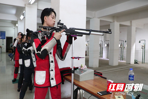 红网时刻7月19日讯(记者 颜瑶 实习生 贺俊娴 夏辉 刘欢)7月19日,烈日当空,正当人们在空调房里喝着冰水消解酷暑时,15岁的女射击队员杨元正身着5斤重的训练服,手举8斤重的气步枪,屏住呼吸,眼神聚焦十米开外的靶心,“啪”一声,正中靶心。扣动扳机,只需要一瞬间,而命中目标,却需要日积月累的训练。随着省运会的日益临近,邵阳市射击队的少年们已进入临战状态。