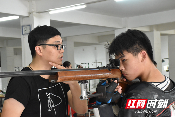 为了固定动作,让人和枪能够很好结合,杨元和队员们必须身着厚重且不透气的训练服进行射击训练。“已经习惯了,我很喜欢射击,射击的时候能让我静下心来,控制好情绪,做到动作细致。”杨元边擦汗边告诉记者,平时在家也会做一些练习来加强腰部力量,希望将来能参加全国、世界级的比赛。正在指导队员们训练的教练胡星海告诉记者,目前训练强度很大,手枪三训,步枪两训,每天差不多8个小时,之后会逐渐缩短,注意调整休息。