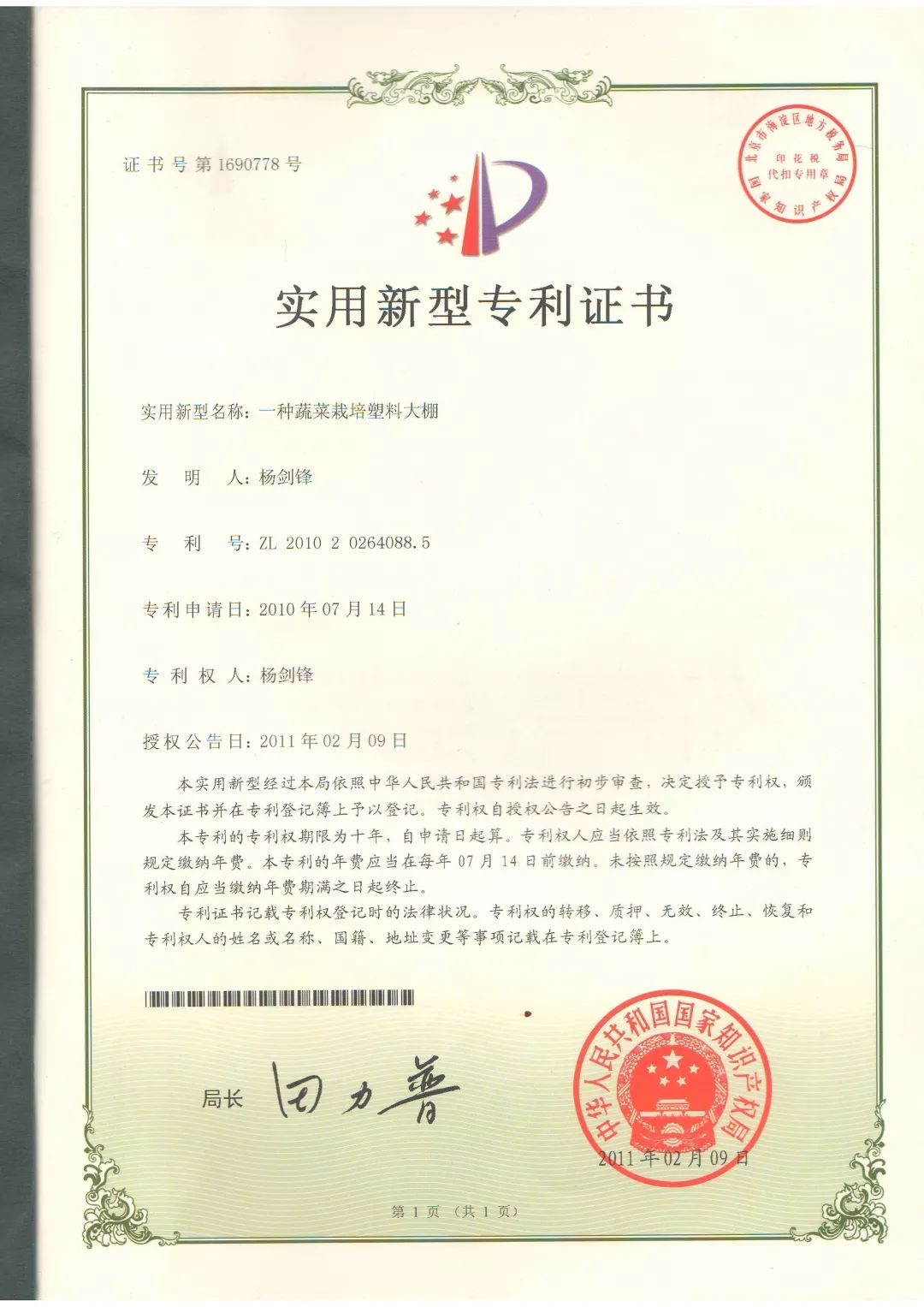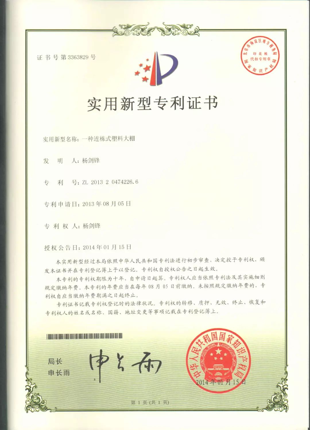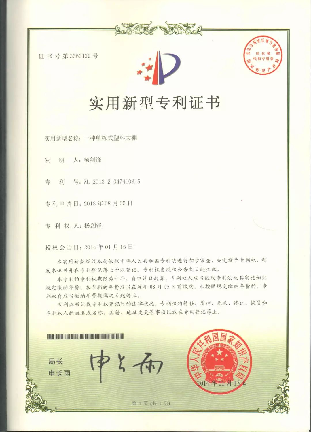 在大棚改造过程中,为了在提升大棚控温效果的同时降低设计成本,杨剑锋常常反复推敲设计图纸,多次试验拆卸、改造、再安装。经过悉心研究,杨剑锋设计开发的蔬菜大棚先后获得4项实用新型专利,并在长沙地区进行推广。