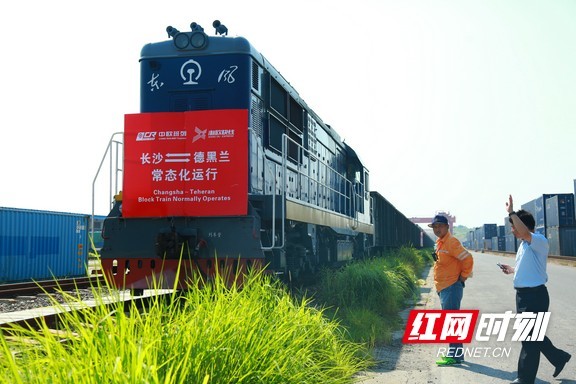 红网时刻长沙7月21日讯(记者 杜成 通讯员 李双妍 张霞)7月21日上午9点3分,伴随着列车的轰鸣声,一辆满载湖南本土货物50个集装箱的中欧(长沙至德黑兰)国际货运班列将从长沙北站启程,由南向北行驶1万公里,经霍尔果斯出境,途径哈萨克斯坦、土库曼斯坦至伊朗,16天后把潇湘特产送进德黑兰。