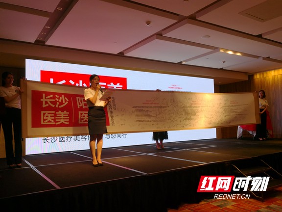 协会工作小组专程设计定制了一幅七米长的公约卷轴,并由长沙医美人集体签名。