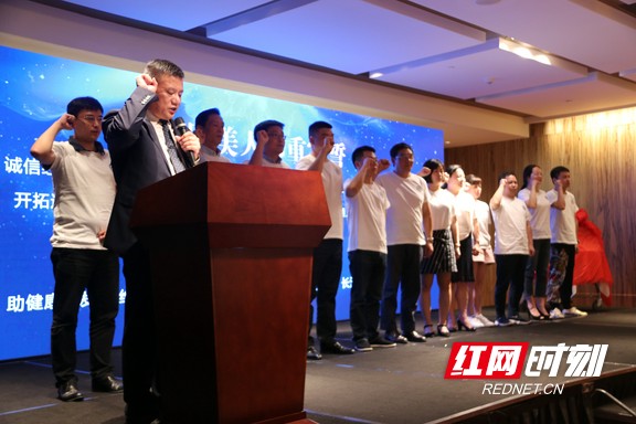 长沙市医美协会会长肖征刚先生带领协会监事长、秘书长、及全体副会长上台宣读誓词。