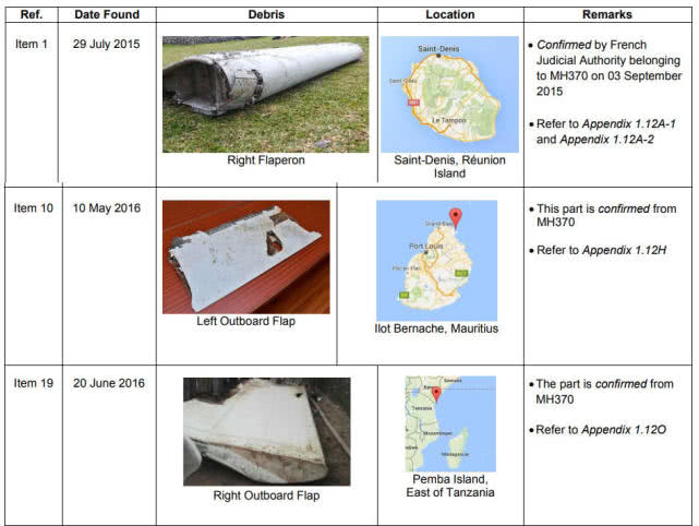 报告中所指认的3块来自MH370的残骸,分别在留尼旺、毛里求斯、坦桑尼亚一带发现