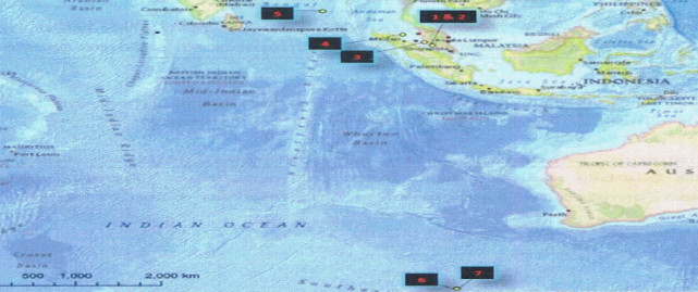 报告提供的机长扎哈里-沙阿家中飞行模拟器的路点,可以看到路点6、7(下方)延伸到印度洋深处