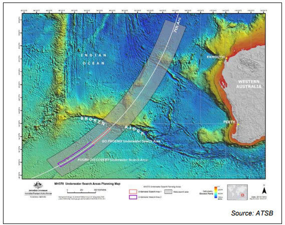 报告给出的MH370的搜索范围