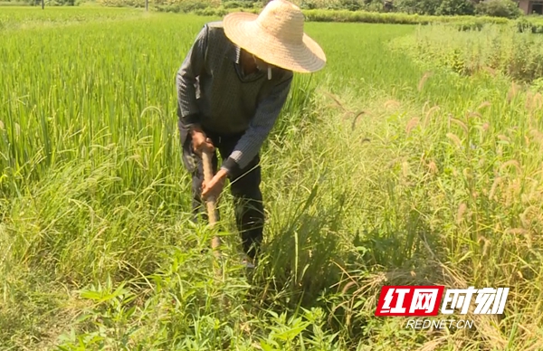 邵东县廉桥镇联丰村护水员谢林瑞正在给稻田放水。