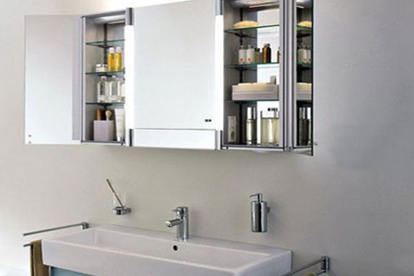 镜柜:一面大的镜柜,不仅可以在空间上起到放大延伸的作用,而且有超强的收纳功能。