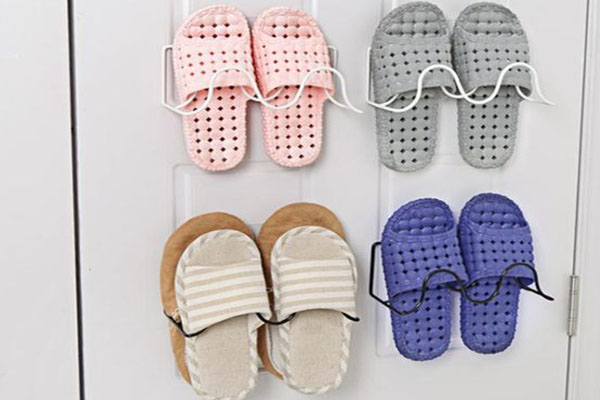 浴室拖鞋架:洗完澡,拖鞋湿哒哒的,潮湿又占地面空间,可以在墙壁上装一个鞋架,拖鞋悬空后干得更快又节约地方。