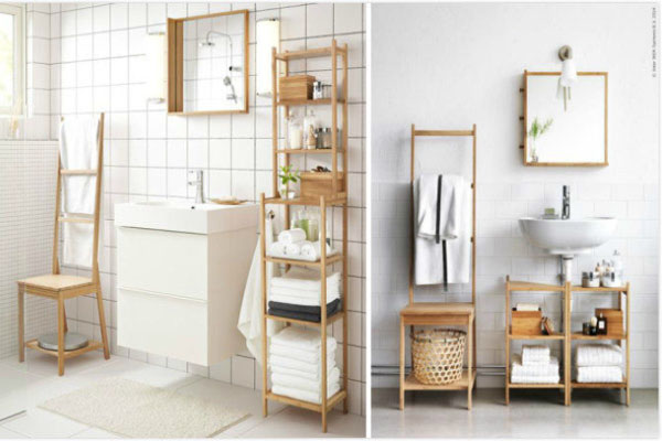 多层收纳架:马桶上的墙面空荡荡,不如在一个下方腾空的架子,把这片空间利用起来,放浴巾或者香薰、纸巾盒都非常适合。洗手台下方一般也是腾空的,可以放个分类收纳架,显得整齐不杂乱。