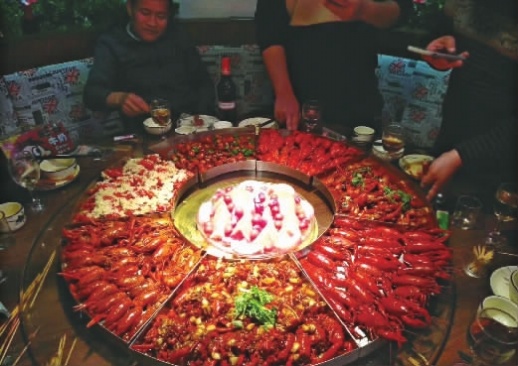 四方商贸城夜宵街的口味虾。本版图片均由记者石芳宇摄