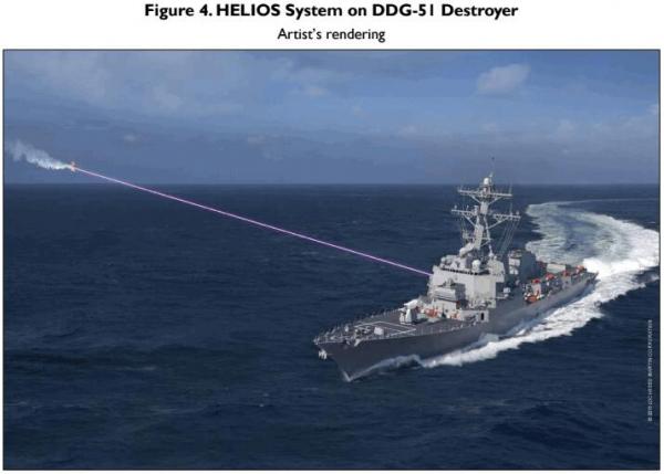 报告称,高能激光武器目前已经具有足够的能量来摧毁小艇和无人机,但仍不足以击落导弹,但是者仍然可以间接提高舰艇的反导能力,因为这样就可以减少使用导弹对付无人机,而有更多的导弹可以用来反导。类似的,虽然使用5英寸(127毫米)舰炮发射的制导炮弹并不能击落来袭的反舰弹道导弹(ASBM),但它却可以间接提高舰队反导能力,因为这种弹药可以有效抗击来袭的反舰巡航导弹,就等于有更多的防空导弹可以用来对抗弹道导弹。