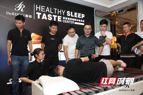 第一站,设计精英们来到了东莞慕思床垫总部展厅,了解慕思旗下众多产品,有轻奢品牌歌蒂娅、年轻化品牌V6、兰博基尼系列等,并在慕思健康私人会所及慕思睡眠酒店体验健康睡眠。