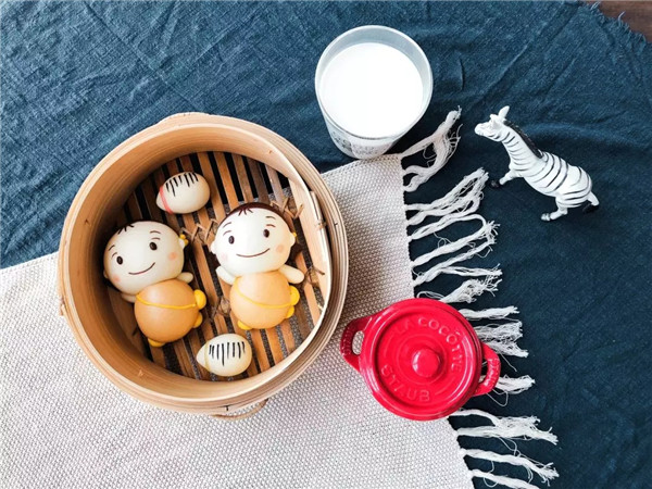 造型完成以后,等娃娃发酵至两倍大,上锅蒸15分钟,静置两三分钟以后再开盖。