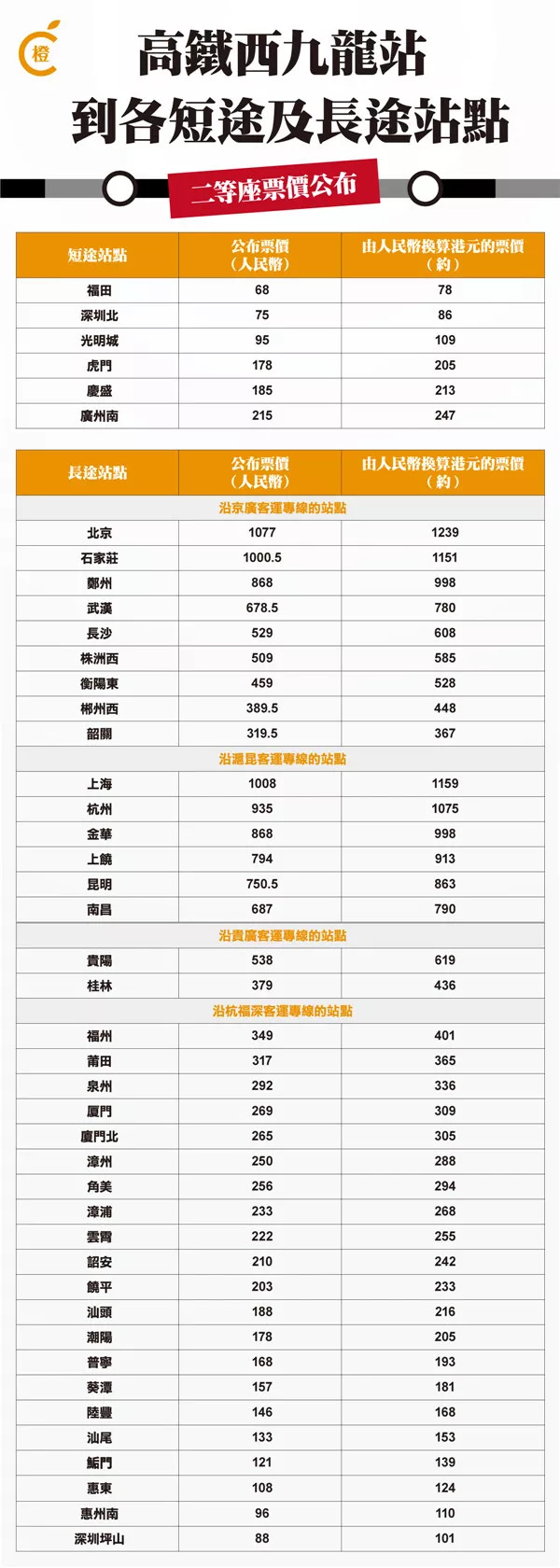 广州南到西九龙票价人民币215元