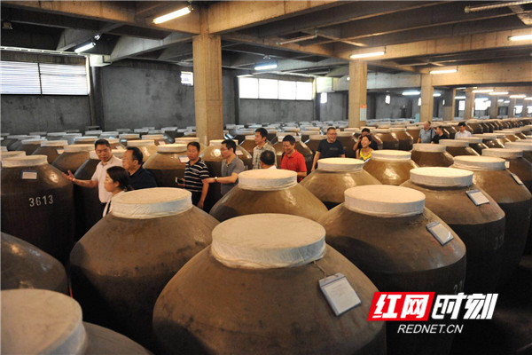 “砥砺前行40年湘酒行”调研组在湘窖酒业考察调研。