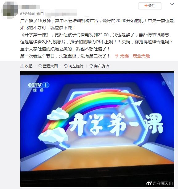 低年级小孩,生生熬到近10点才能睡,本来开始时间就不早,还不赶紧播出,能好好开学第一课吗?