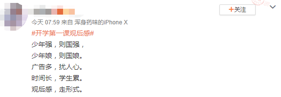我家孩子报名回来就说要求看《开学第一课》,然后被我和她爸直接忽略了。