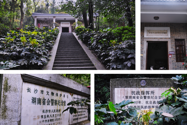湖南省会警察纪念堂,在麓山景区管理处和麓山寺之间的登山马路旁。湖南省会警察纪念堂建成于1935年11月底,原本仅用来公祭殉职的长沙警察,在抗战时期,尤其是在三次长沙会战期间,忠勇的长沙警察同守军一道与长沙城共存亡。抗战胜利后,湖南省会警察纪念堂曾举行公祭,祭祀在抗战中英勇殉职的长沙警察。