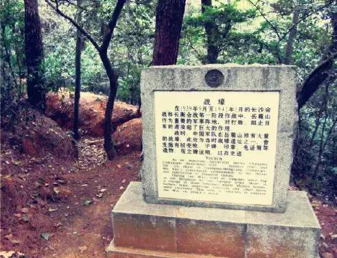 岳麓山中遗存战壕长达10余公里,曾发掘出大量的弹药、枪支等遗物。目前山上的战壕由于年深日久,周边落下的土将战壕垫高了,最深的地方不到1米,在两侧的内壁或者长满了野草,或者露出光秃秃的黄土。