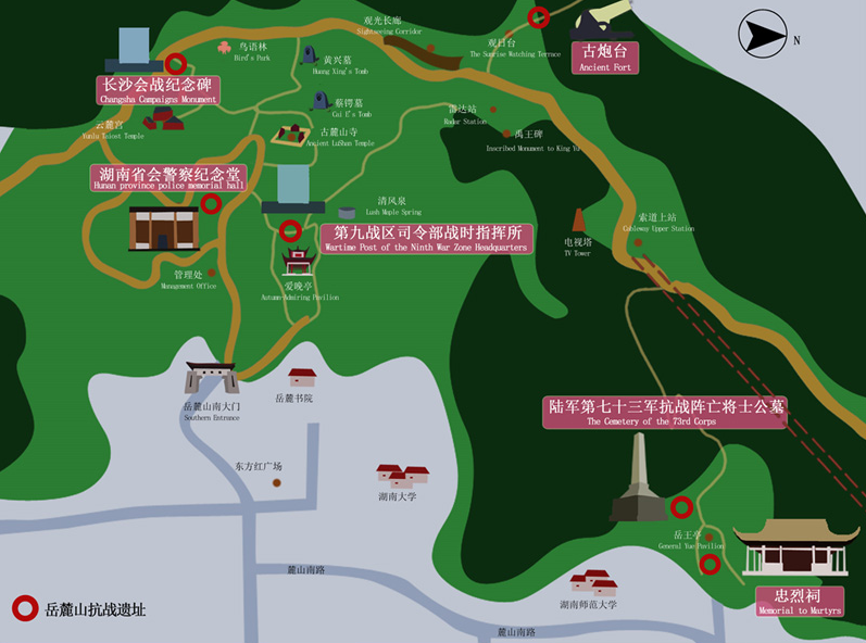岳麓山抗战遗址分布图。图片来源 红网图片频道