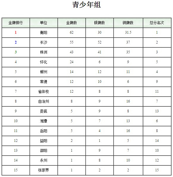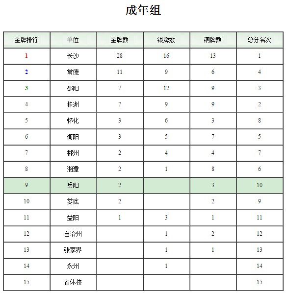 第十三届省运会赛会最新奖牌榜。
