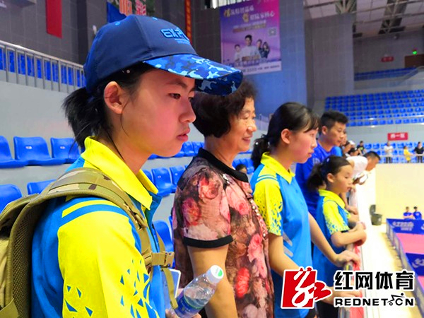 湘西代表队明时漮林奶奶(左二)和姐姐(左一)在看台上为他加油。