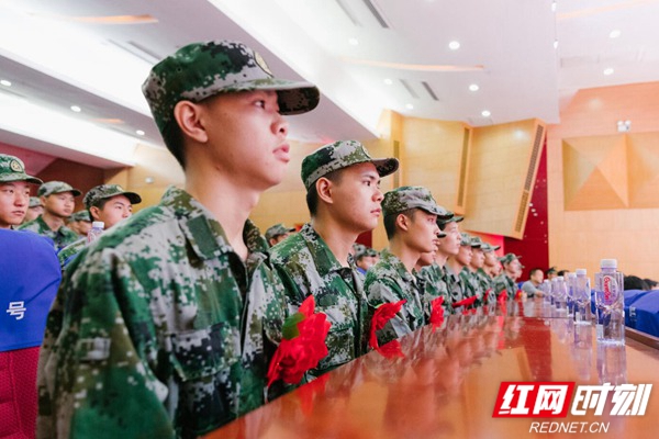 9月6日上午,湖南理工学院在音乐厅举行2018年大学生应征入伍欢送会。