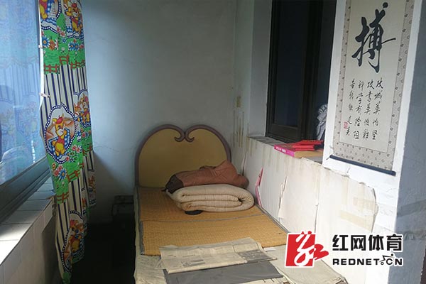进门后,他就指着不到自己胸口的冰箱说,小时候训练完回家,第一件事就是打开冰箱给自己降温,再喝一口冰水。随后带着记者走到阳台,“看,这张床,我小时候就睡这里,直到我进了省队。”