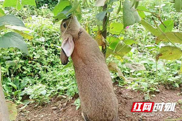 在朝天观护林点,张东扬养了四只兔子,其中有一只被老鹰吃掉了,剩下的三只陪着他,经常在他的菜地偷吃菜。受访者供图