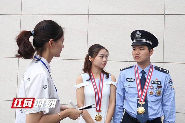 整理思绪时,影展当天的一些细节莫名地涌现出来:19位公安英模和领导嘉宾合影留念,匡兵下意识地轻轻握住了温琦华的手;二人在接受媒体采访时,匡兵在说,而此时的温琦华安静地站在他身旁,脸上写满了崇拜。