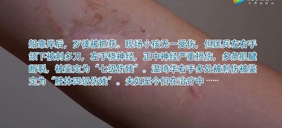 丧心病狂的歹徒又将目标转向温琦华保护着的3个孩子,而温琦华一直把三个孩子紧紧地护在自己怀中。歹徒持刀猛刺数刀,温琦华右手立即变得血肉模糊,雪白的T恤被鲜血染成红色。