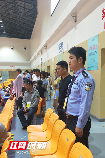 9月13日,在省运会的篮球比赛现场,匡兵正在执勤。